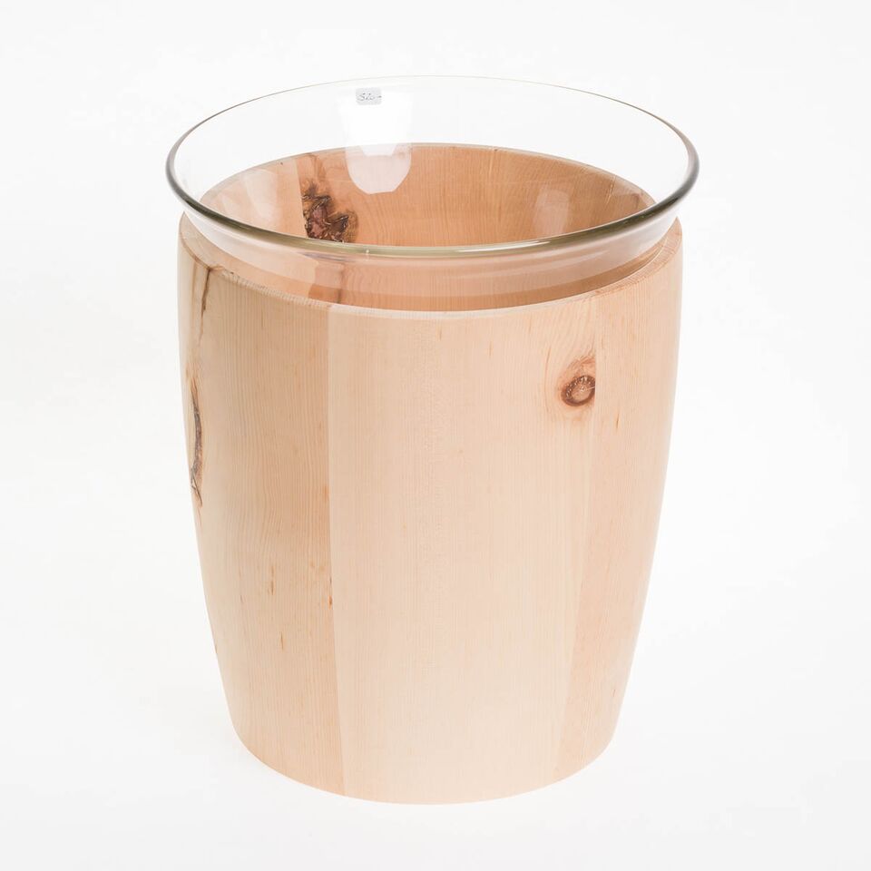 Modell: „Glasi Weinkühler„ ungeschnitzt. Der Weinkühler in Arvenholz ist ohne Glas. Das passende Weinkühlerglas von der "Glasi" kann für CHF. 175.00 dazu bestellt werden.