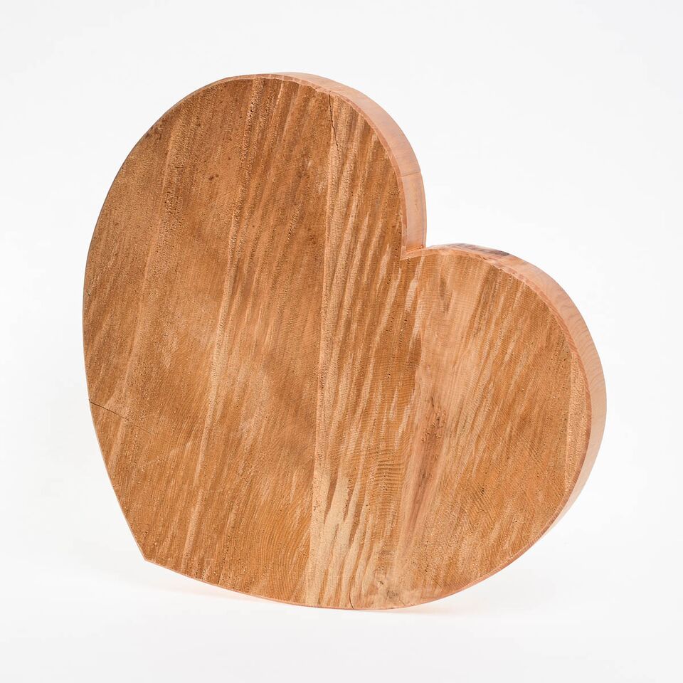 Herz in Arvenholz massiv, Sägetechnik aus rohen Arvenholz-Baumscheiben ausgeschnitten. Geeignet als Dekoration vor der Haustüre, im "Suler" oder auf dem Fensterbrett.