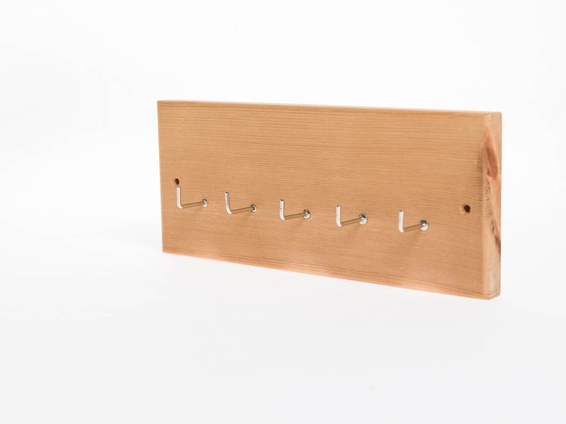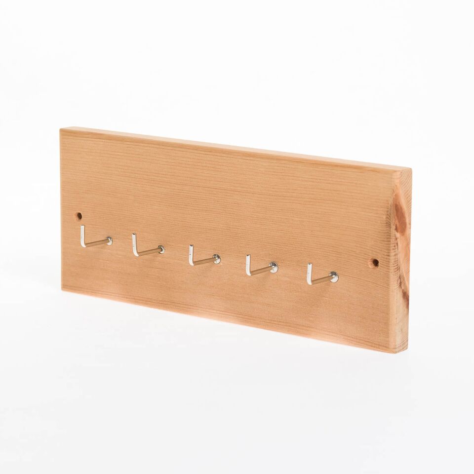 Schlüsselbrettchen in Arvenholz massiv. Brettchen mit 5 Winkelschrauben in Messing.
