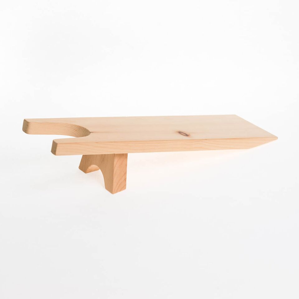 Stiefelknecht in Arvenholz massiv bestehend aus schräggestelltem Fussbrett mit einer Konsole.