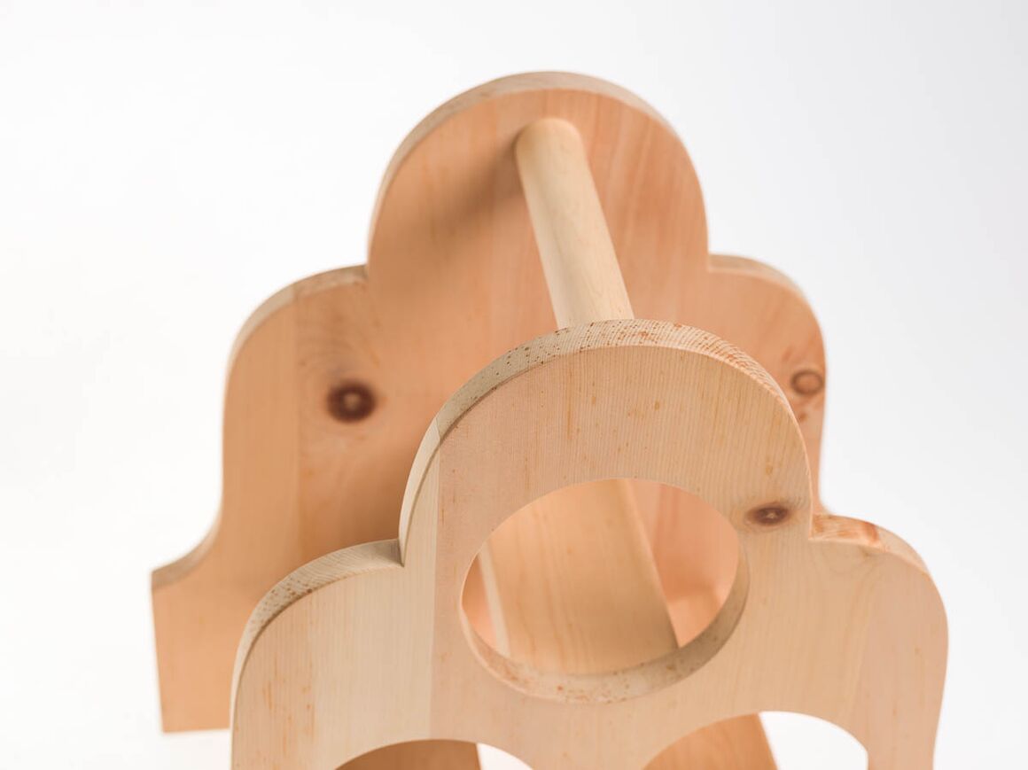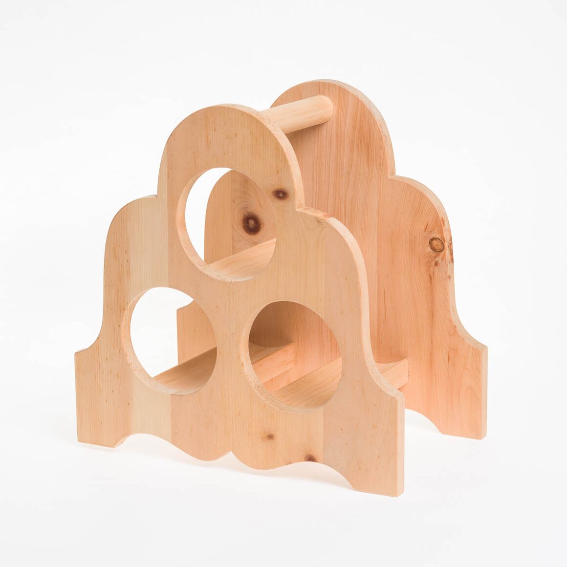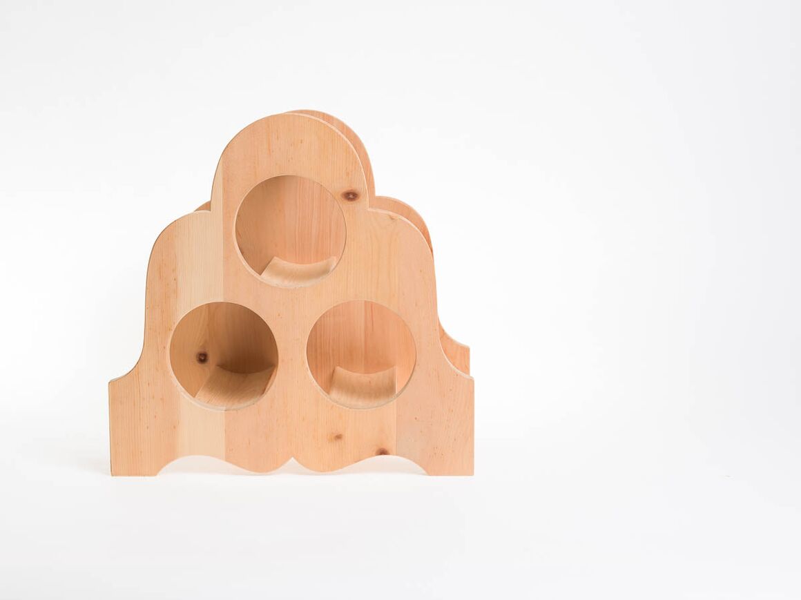 Weinflaschenständer in Arvenholz massiv. Weinständer für 3 Flaschen. Front und Rücken geschweift. Ständer mit Traggriff.