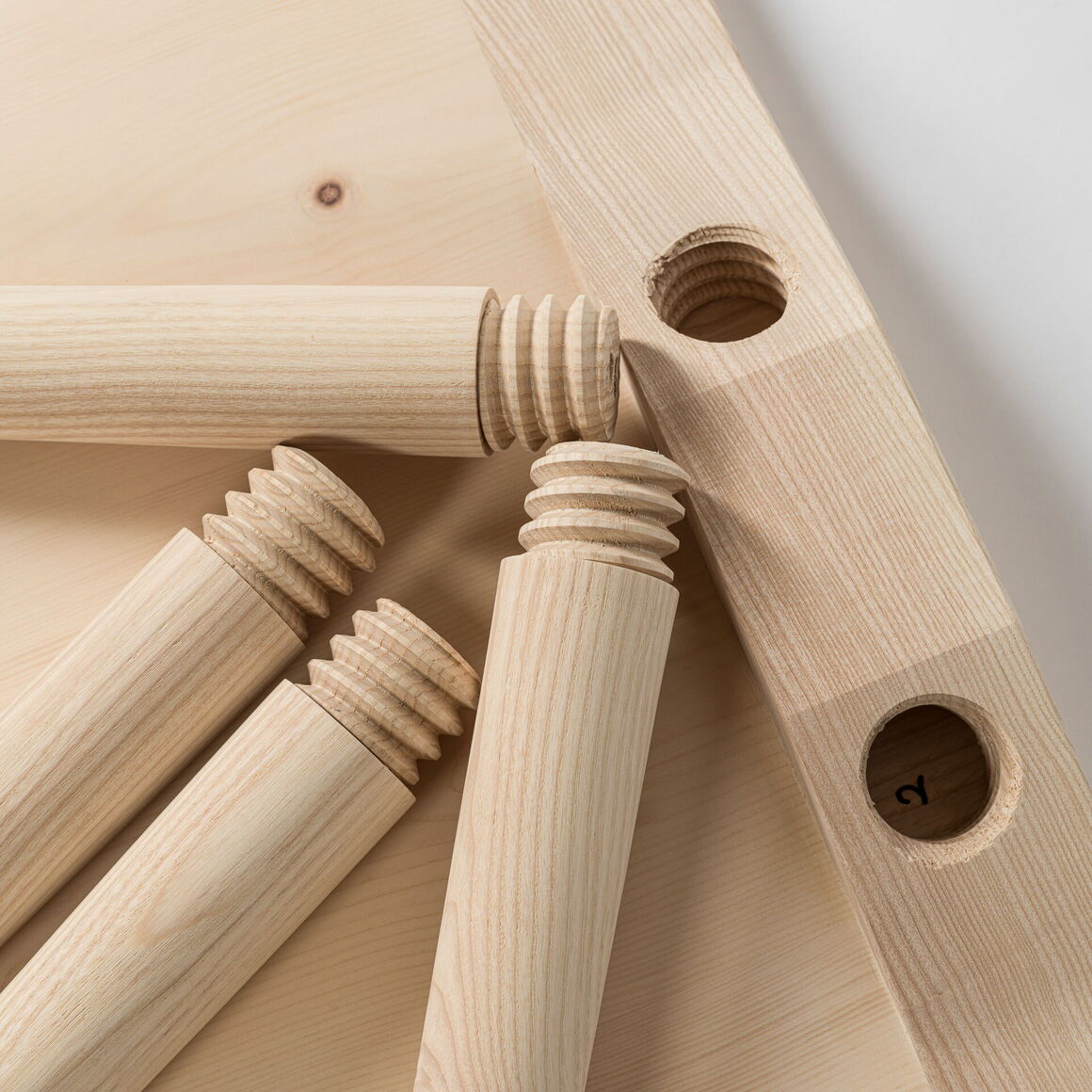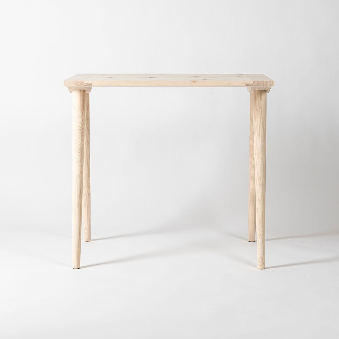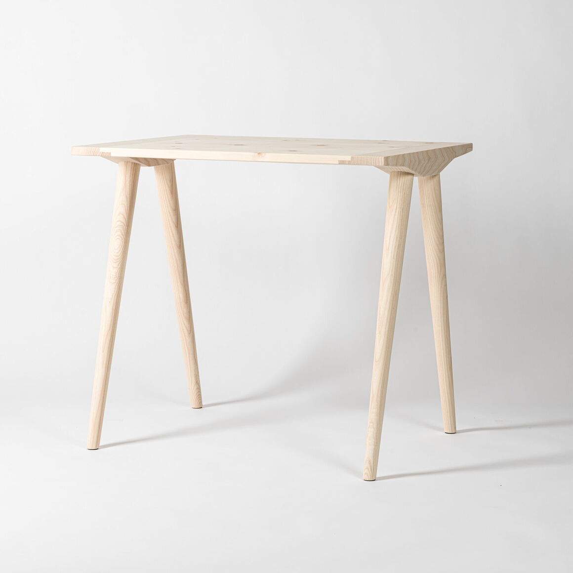 Der Schreibtisch ist sehr geeignet für Homeoffice-Aufgaben oder auch für Coworking Situationen. Konstruiert und designt aus einer Arvenholzarbeitsfläche, die seitlich mit zwei Hartholzanleimer ergänzt wird. Diese Anleimer sind zugleich die Halter für die ausschraubbaren Beine. Die Beine sind handwerklich wertvoll mit einem Holz-Gewinde versehen. Die Beine lassen sich einfach ein- und ausdrehen. Die Beine sind konisch, rund von Hand gedrechselt.